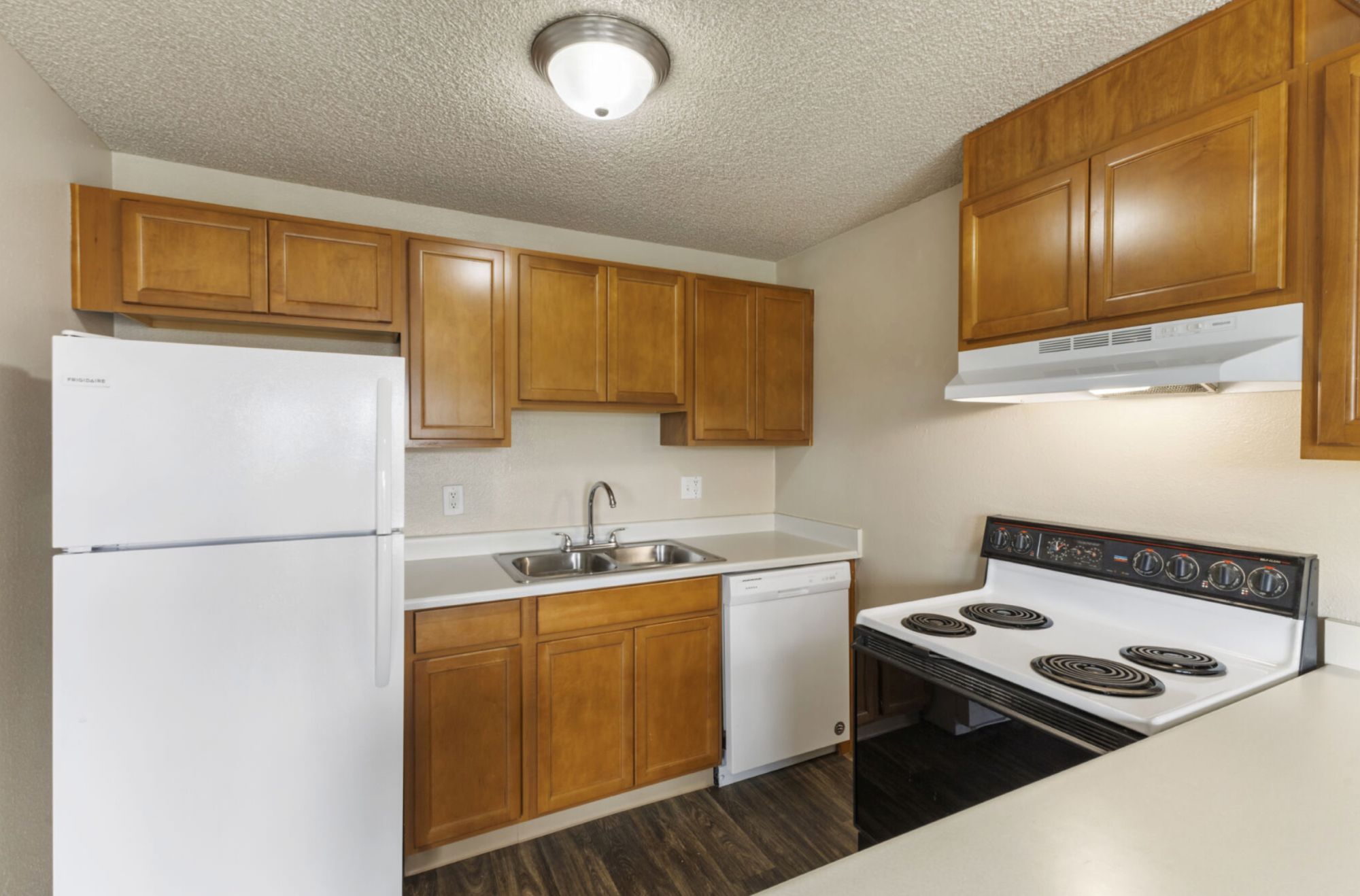 Units feature private balconies or patios, open-concept layouts, and functional kitchens. Covered parking, an on-site laundry facility, and lush landscaping add comfort and convenience for residents.