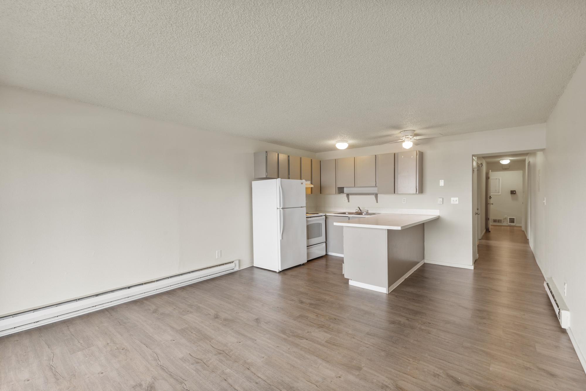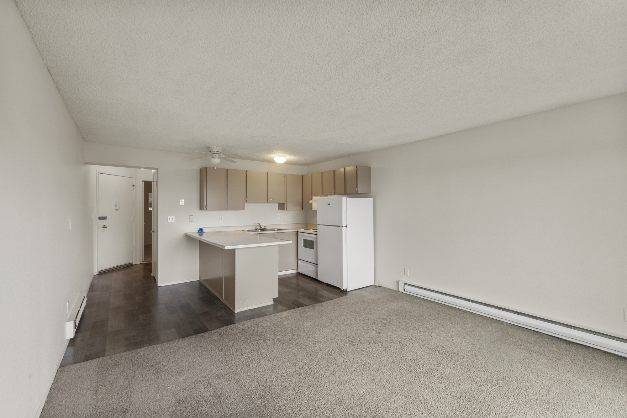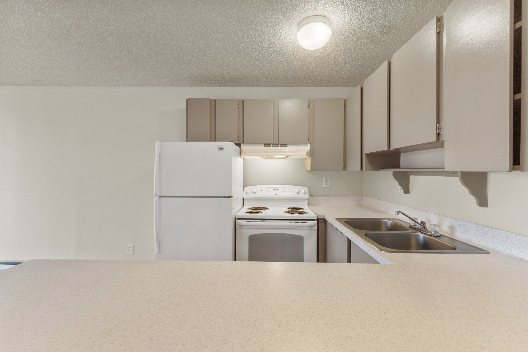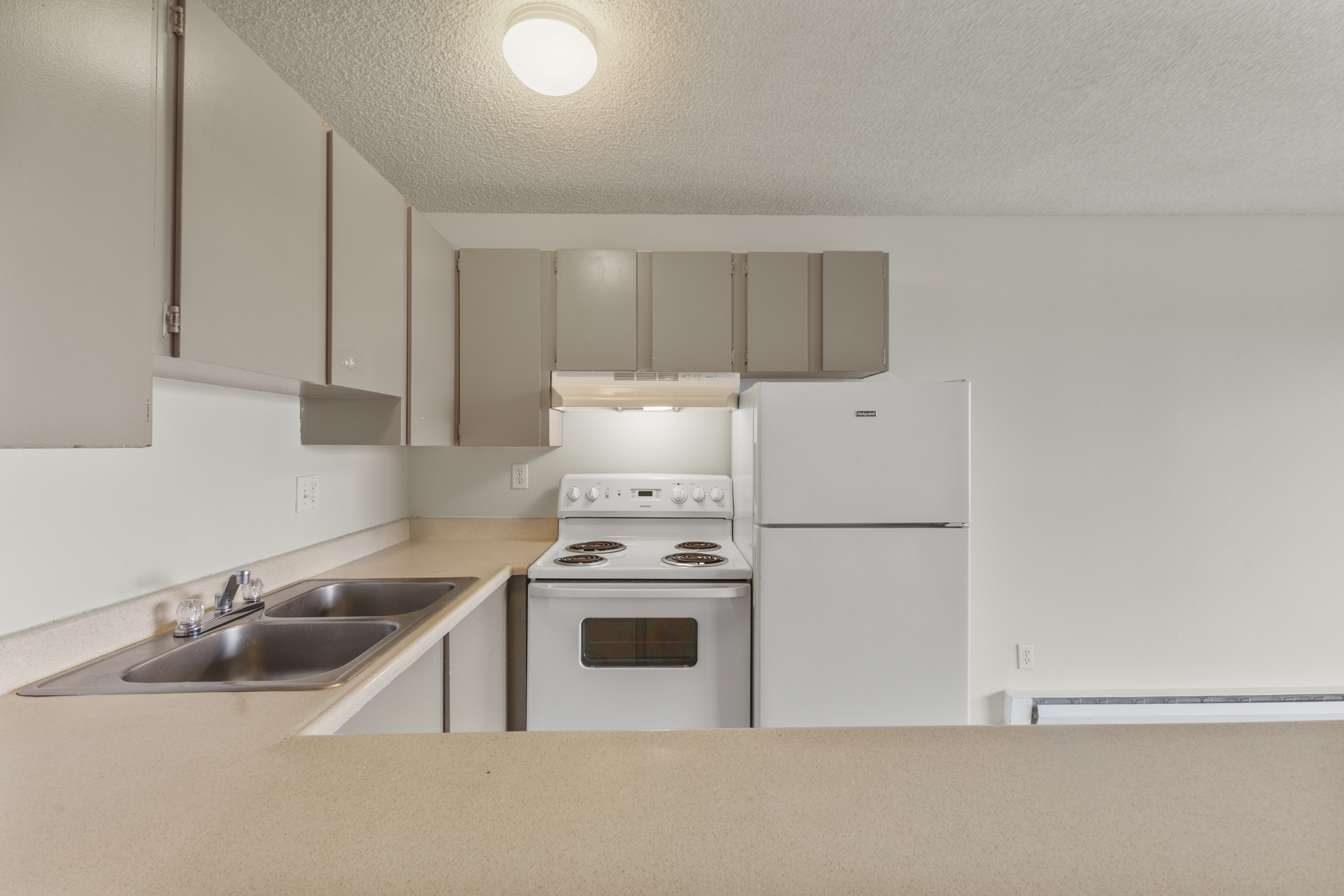 Each unit features thoughtful touches like breakfast bars, garbage disposals, and private balconies with views. Residents enjoy controlled building access, reserved and covered parking, and an onsite laundry center. Baycrest is also pet-friendly, making it a perfect choice for renters who value both home comforts and city living.